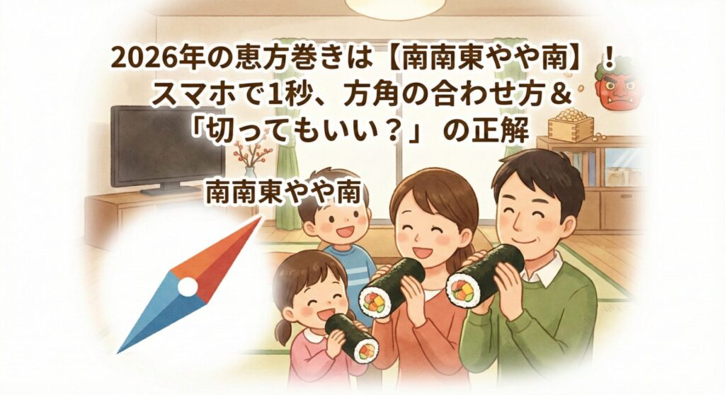 2026年の恵方巻きは【南南東やや南】!スマホで1秒、方角の合わせ方&「切ってもいい?」の正解